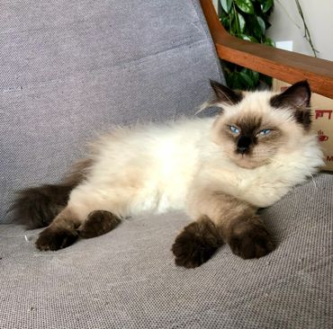 Voici Phoenix, notre beau grand garçon. Personne ne peut résister à son regard charmeur. Il est de nature très sociable et affectueuse. Son activité favorite : se faire caresser pendant que ses humains regardent la télévision . Un vrai chat de salon quoi! Un simple regard et le ronron se met en marche. Il est l’ami de tous les chats et tout simplement extraordinaire.